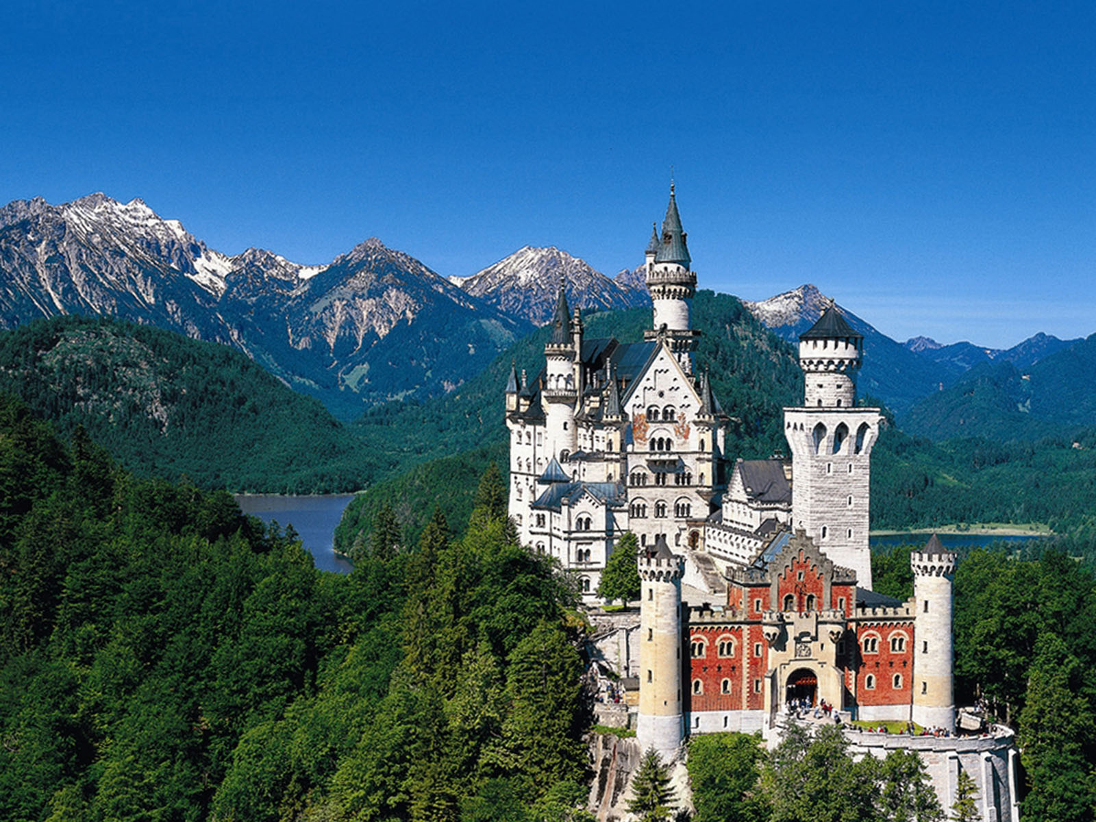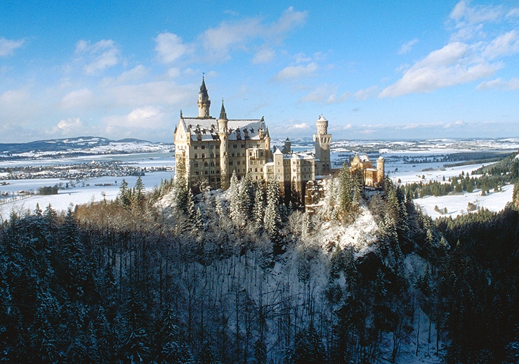 Zamek ten, pęknie położony wśród alpejskich skał na styku granic niemieckiej i austriackiej, jest chlubą Bawarii. Neuschwanstein – Nowy Łabędzi Kamień – to neoromańsko-pseudomauretańsko-gotycki zamek stworzony przez króla Ludwika II Bawarskiego zwanego Szalonym.