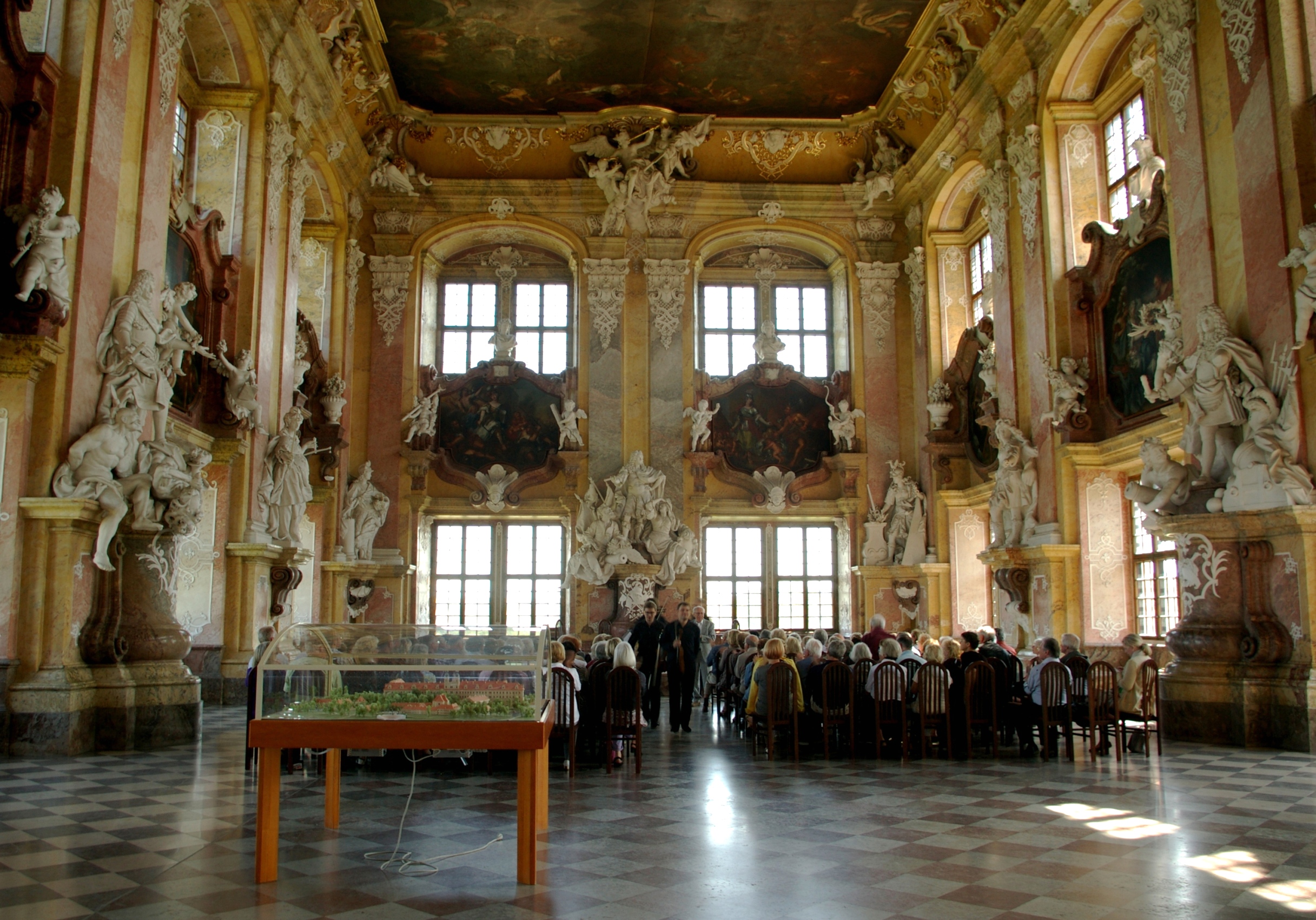 Na zespół klasztorny składają się: bazylika, klasztor, pałac opatów, kościół św. Jakuba i zabudowania gospodarcze. Głównym pomieszczeniem reprezentacyjnym klasztoru jest Sala Książęca. To wspaniałe barokowe wnętrze ma niewiele sobie równych w całej Europie. Ogromna sala zajmuje dwie kondygnacje wschodniego skrzydła rezydencji opackiej. Wielkie okna umieszczone na trzech ścianach znakomicie współgrają z kolosalnej wielkości rzeźbami F. J. Mangoldta i gigantycznym plafonem namalowanym przez K. F. Bentuma. Równie ciekawe do zwiedzenia są jadalnia opata i refektarz letni.