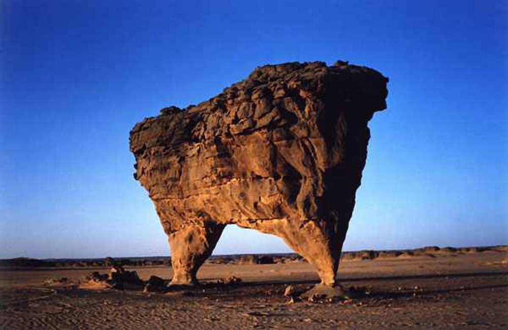 Dzień 6: Tassili du Hoggar – El Ghessour. Rano wyjeżdżamy na południe do w rezerwatu Tassili du Hogar. To tu wprost z pustynnego podłoża wyłaniają się ścięte, strzeliste bloki skalne o bardzo wymyślnej strukturze
